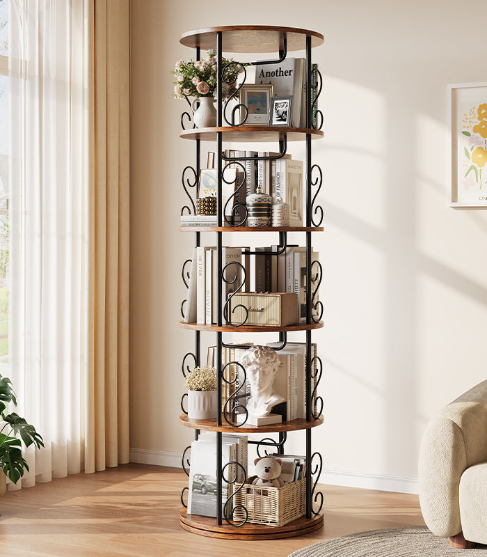 Vendor:vividwoodVividwood 5-Tier Rotating Bookshelf - 360° Spinning Display Corner Bookcase with Stackable Design