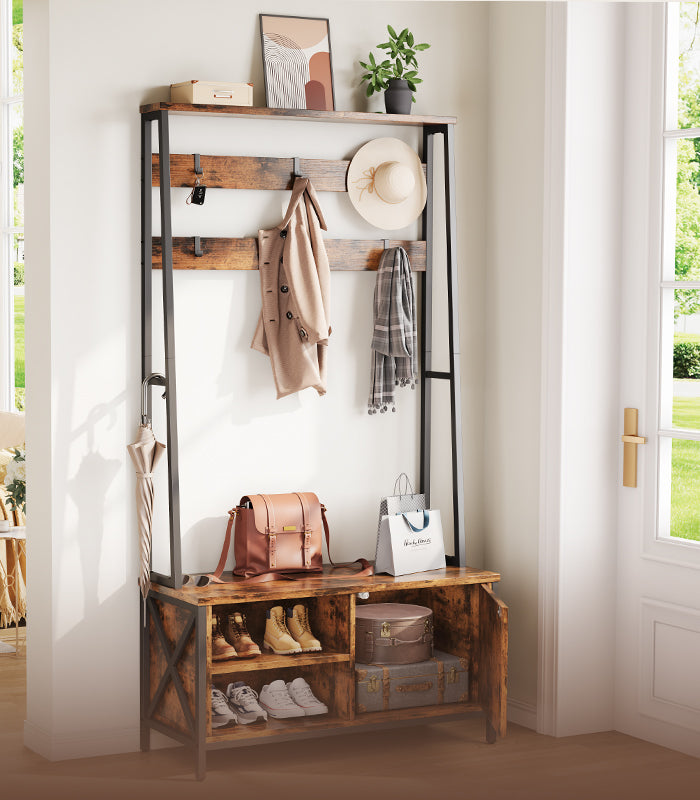 Vendor:vividwoodVividwood Hall Tree with Bench - Shoe Storage Organizer 39.37" (Brown)