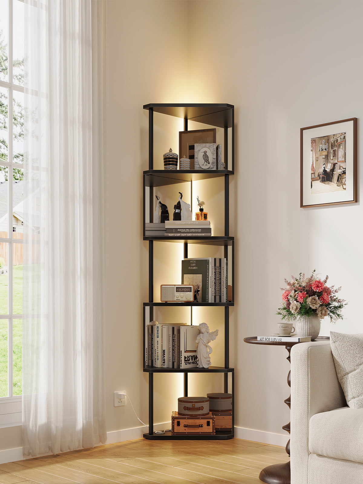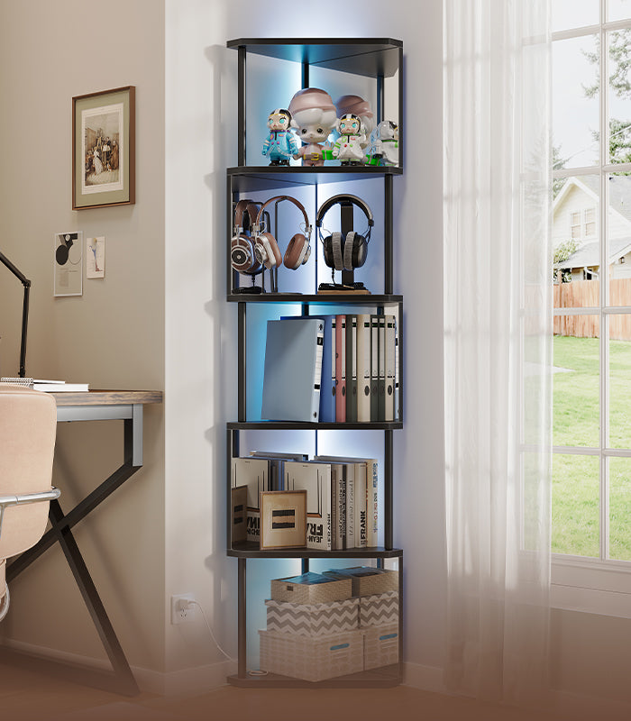 Vendor:vividwoodVividwood 6-Tier Industrial Corner Bookshelf with LED Color-Changing Lights & Mirrored Panels, Remote Control Space-Saving Display Shelf for Bedroom & Living Room