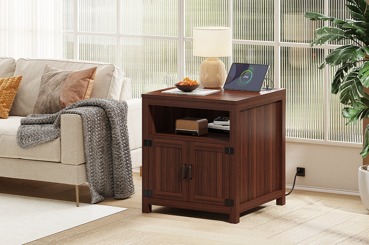 Vendor:vividwoodVividwood Farmhouse Coffee Table with Storage - 39.3" Wooden Rectangle Center Table & V-Shape Legs (220lbs Capacity)