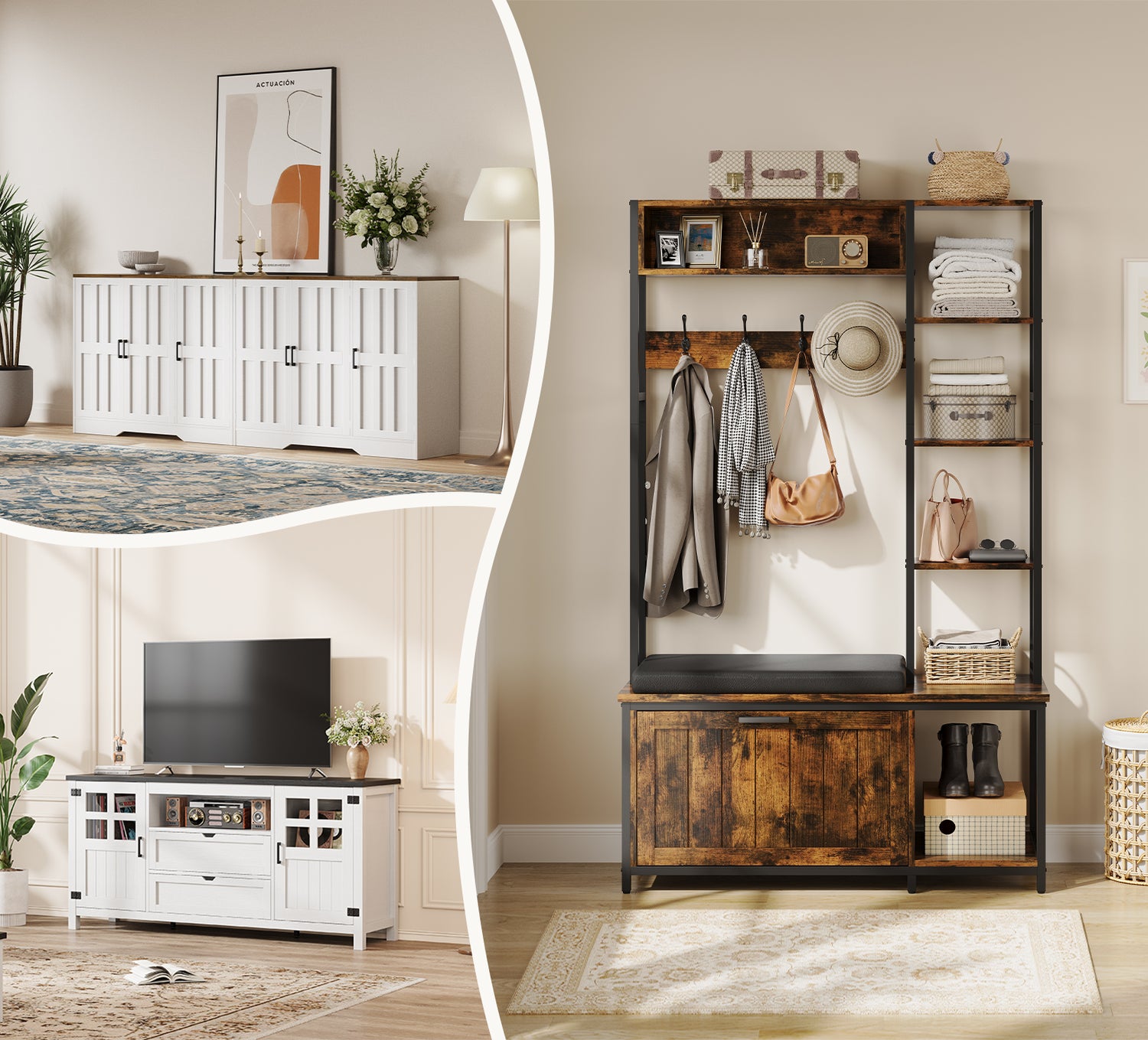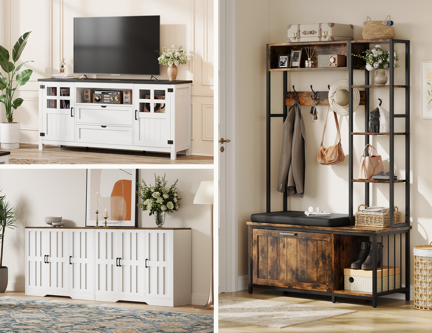 Vendor:AesthLifeVividwood Farmhouse TV Stand with Storage - Entertainment Center (Rustic White)
