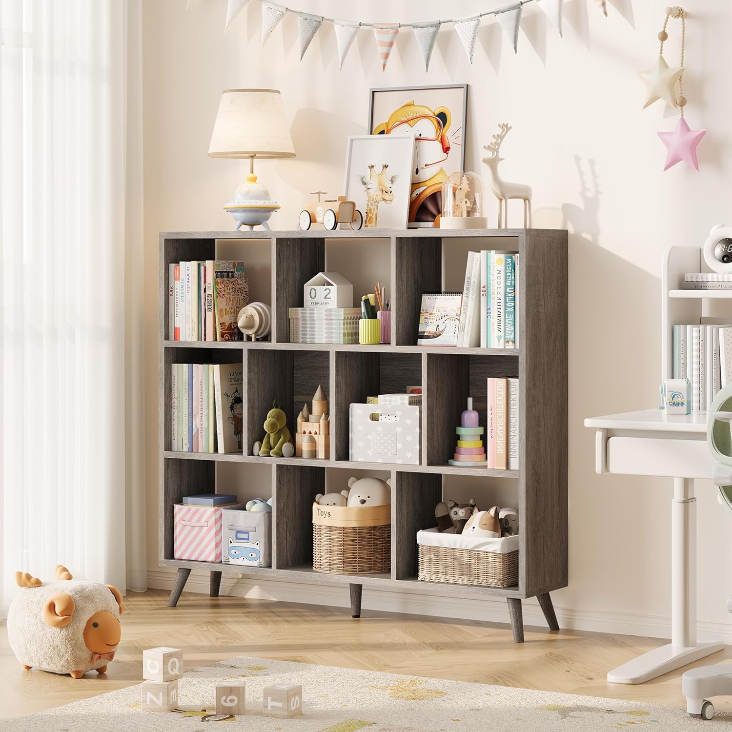 [Large Storage Space] The Vividwood 47.2" wide bookshelf offers ample cubic storage with deep compartments, perfect for organising books, toys, and everyday essentials. Its open design makes it easy to showcase decorations and collectibles, while the modern criss-cross partitions add both style and function. With 10 spacious cubes plus a top shelf for extra display, this bookcase provides versatile storage and becomes a standout feature in any room.