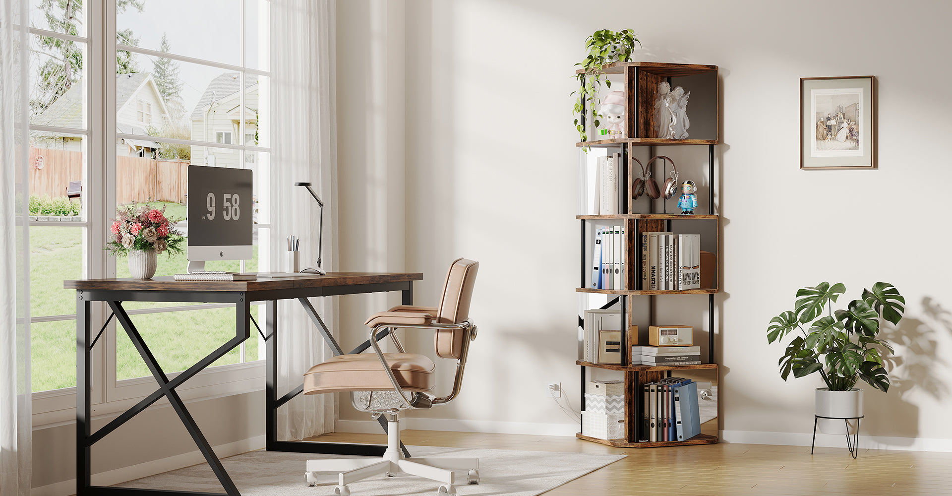 Vendor:vividwoodVividwood 5-Tier Corner Bookshelf - Industrial Wooden Display Shelf with Metal Frame