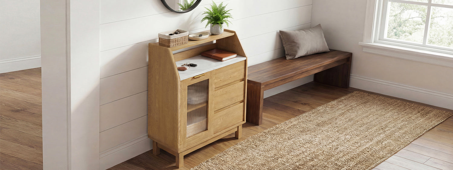 Keys in the drawer, decor on the tiers, and clutter behind the doors. Finally, a cabinet that keeps up with your daily rhythm and keeps your entryway spotless.
