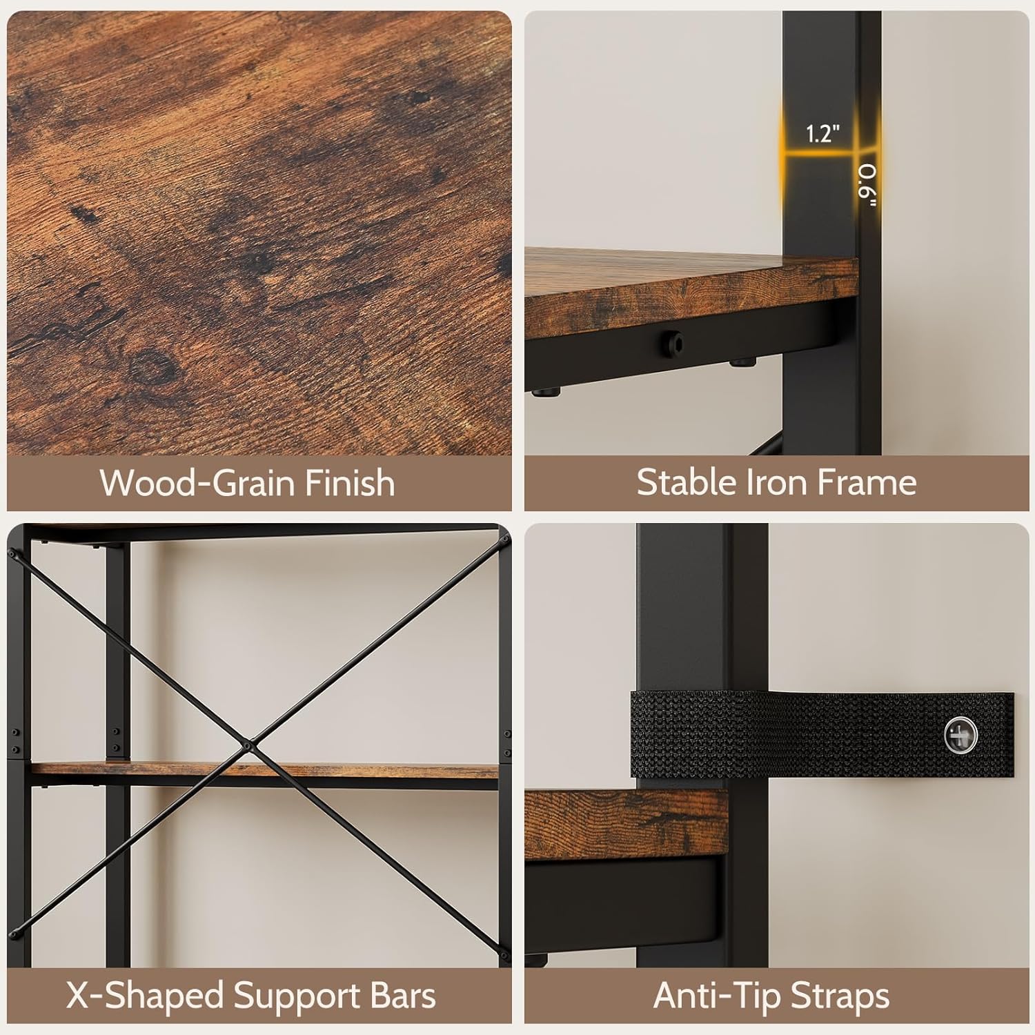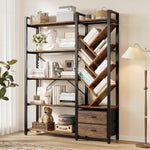 Vividwood 5-Tier Industrial Bookshelf - Tree Display with Fabric Drawers (Rustic Brown)