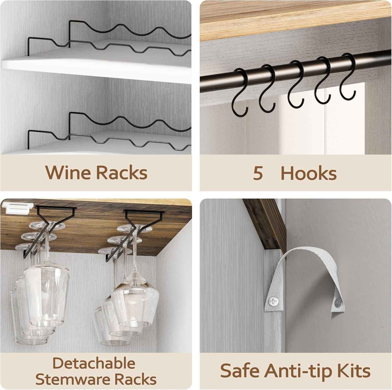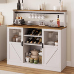 Vividwood Farmhouse White Bar Cabinet - Acrylic Door Wine Storage with Open Shelves