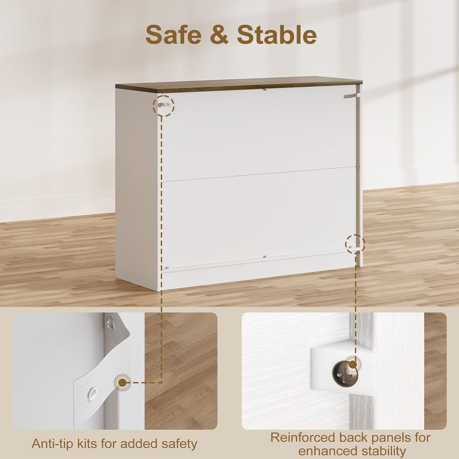 [Premium, Long-Lasting Construction] Crafted from high-quality MDF with a reinforced back panel and sturdy base, this buffet cabinet offers reliable support and long-term durability. The wood grain finish is waterproof, scratch-resistant, fade-resistant, and easy to clean—perfect for everyday use. Magnetic doors and metal handles provide smooth access to your items.