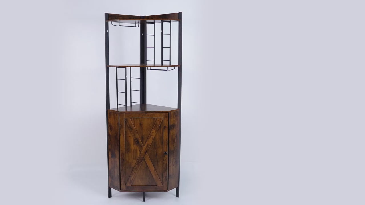 [Perfect for Corners] Turn unused corners into functional highlights with this 5-tier corner bar cabinet. Designed to maximize space and elevate your interior, it features a chic farmhouse look complete with classic barn-style doors and vintage metal hardware. It’s the perfect blend of rustic charm and practical storage.