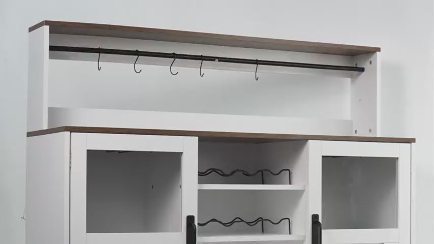 Convenient Cup Hooks & Open Shelves: Equipped with cup hooks and open shelves, this cabinet provides easy access to your favorite mugs, glasses, and small appliances, ensuring everything is within reach.Simplify your daily routine by keeping frequently used items organized and accessible.
