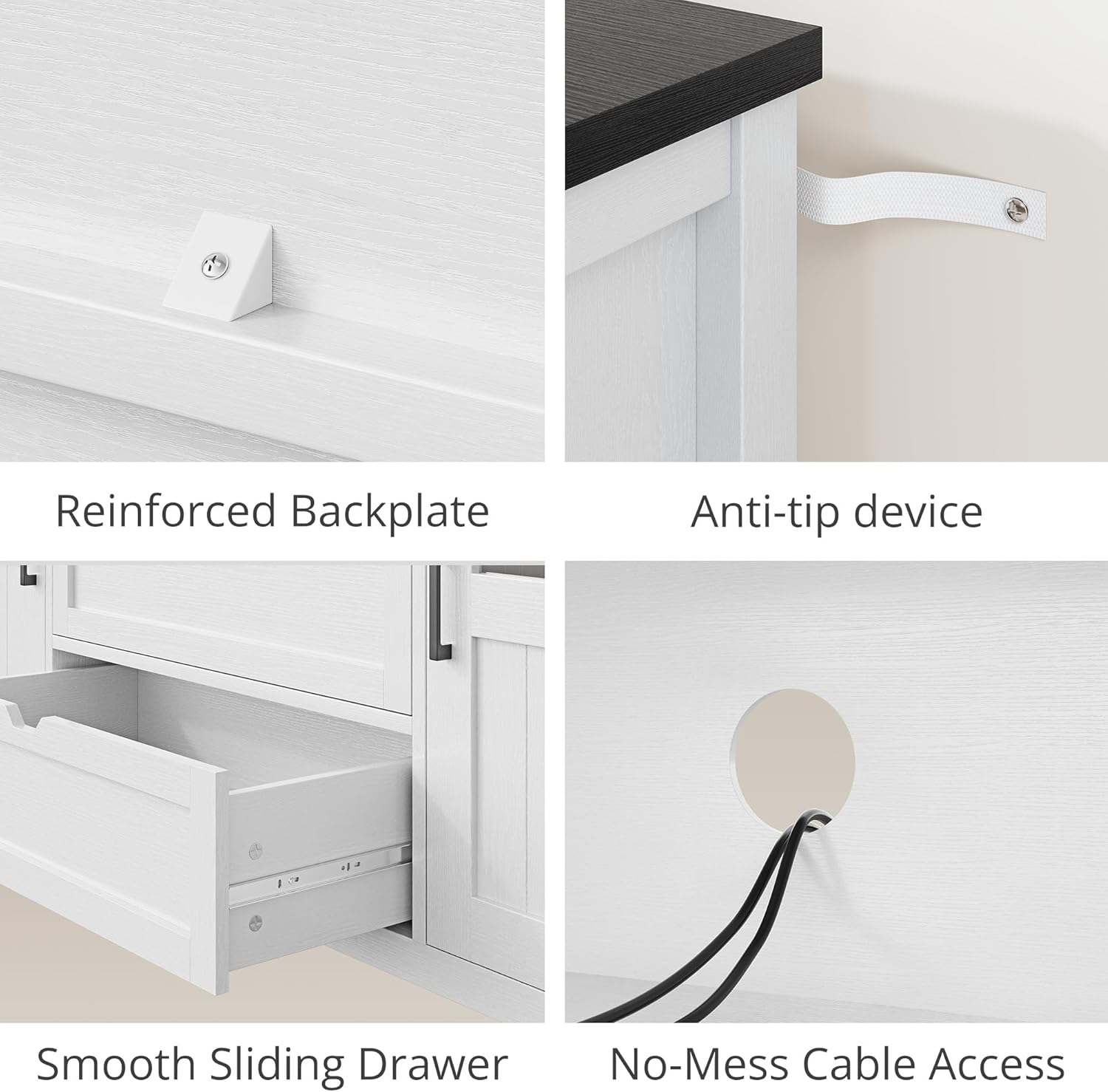 Fits Up to 70-Inch TV & Anti-Tip Safety: Engineered to support TVs up to 70 inches safely. Includes an anti-tip kit to secure your entertainment center firmly, ideal for households with children or pets