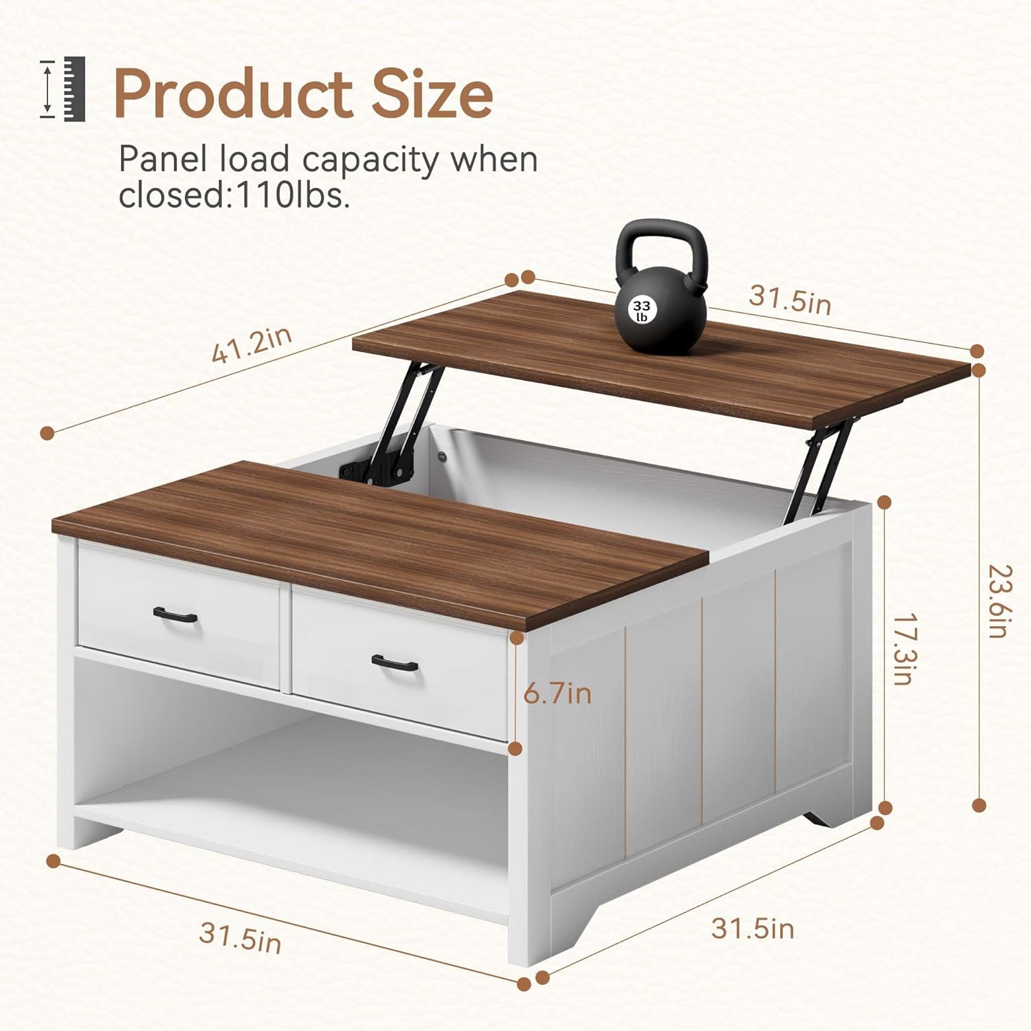 Effortless Lift-Top Functionality: Designed for modern living, this coffee table features a smooth, high-performance hinge gas lift-top mechanism that raises the tabletop from 18.3" to 23.6" with ease. Whether you're working, dining, or relaxing, enjoy a more ergonomic experience without leaving your sofa. The seamless lift-top design transforms your table into a convenient workspace or casual dining area—no leaning, no straining.
